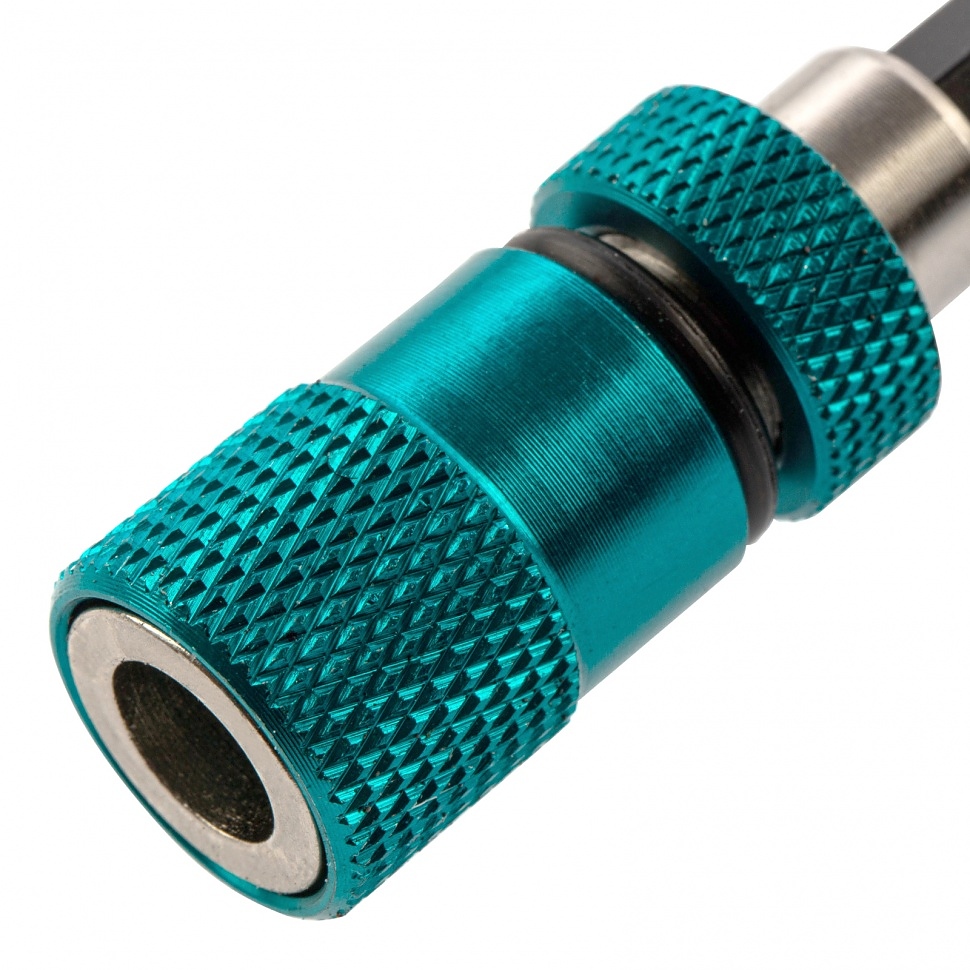 Адаптер за накрайници с ограничител и двоен магнит Gross 11317, 1/4 инча, осигурява сигурно фиксиране на сменяеми накрайници при работа с отвертки. Побира се в патронника на отвертка и позволява бърза смяна на битове. Регулируемият ограничител на дълбочината на завинтване предотвратява забиването на крепежни елементи твърде дълбоко в гипсокартон и други меки материали и ги предпазва от повреда.