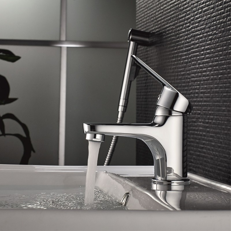 Смесител за умивалник за стоящ монтаж с бидетна слушалка е един много практичен продукт, който може да се приложи в много домакинства, както на порцеланови мивки, така и с мебел за баня /ако се направи странично отвор, през който да излезе шлауха/.