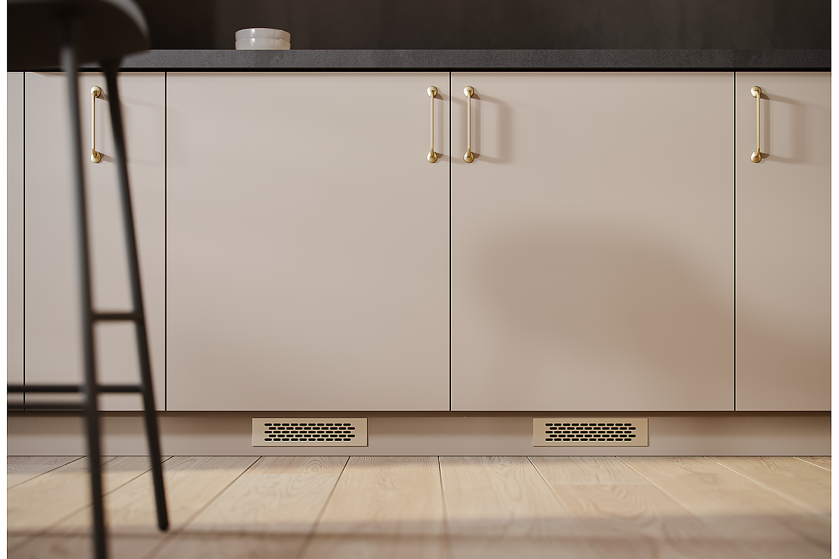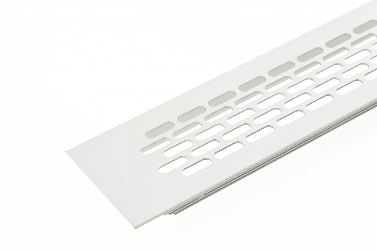 Алуминиева вентилационна решетка в цвят матирана стомана. Вентилационната решетка работи добре при вграждане на уреди за вграждане в кухнята и банята м. вградена фурна, хладилник. Вентилационната решетка осигурява правилна циркулация на въздуха, предотвратява прегряване на мебелите и отлагане на влага в структурата им. Вентилационната решетка е подходяща за монтаж в мебели, но не може да се използва в стени и вентилационни канали.