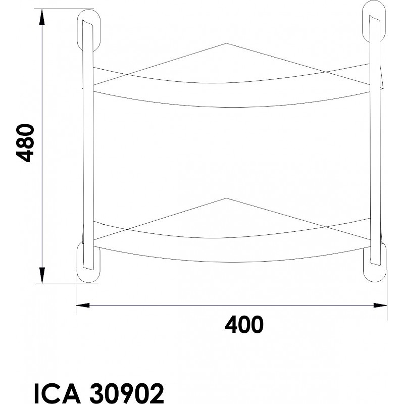 Стъклена двойна ъглова лавица с размери : 30 * 45 * 46