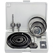 Комплект боркорони изработени от въглеродна стомана с твърдост HRC 20-22. Комплектът разполага с размери от 19 до 64, общо 11 части 1" (19мм, 22мм, 29мм, 32мм, 38мм, 44мм, 51мм, 64мм). Дълбочина - 1" (25мм). В комплекта е включен център за боркорони.