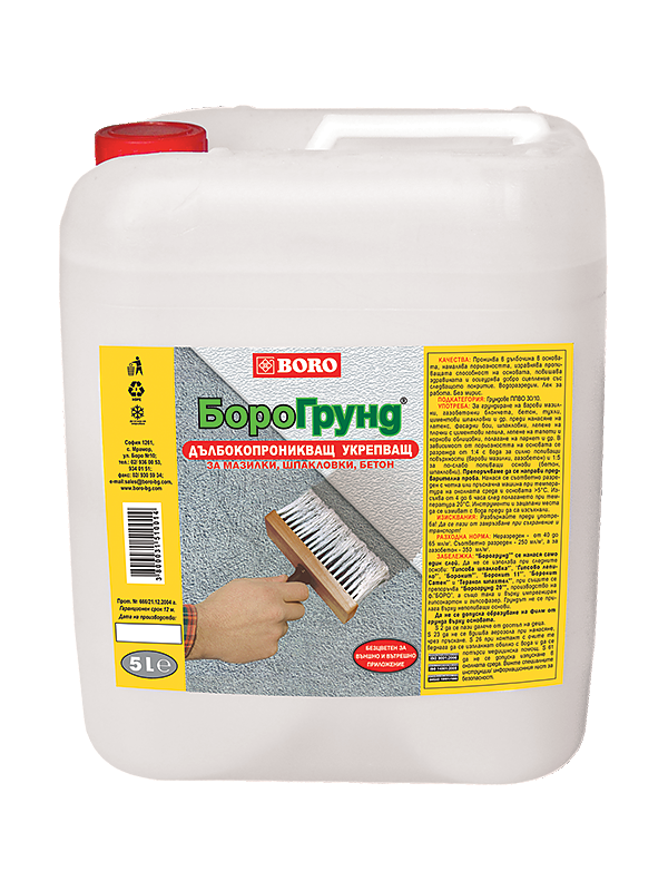 Предназначение: Употребява се за грундиране на циментови, варо-циментови, гипсови мазилки и шпакловки, бетонови повърхности, газобетон, тухли и други преди нанасяне на латексни, фасадни бои, лепене на плочки с циментови лепила, лепене на тапети и коркови облицовки, полагане на паркет и др. Намира приложение и за грундиране на бетонови повърхности