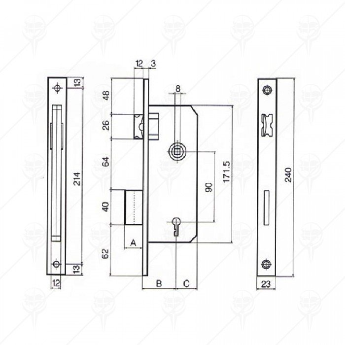 Брава с език и обикновен ключ RANE е с размер 90 мм.