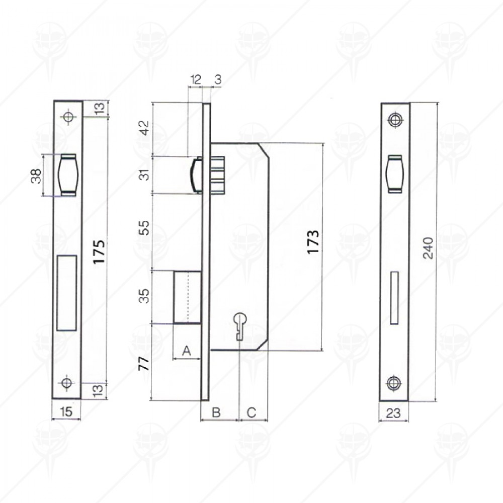 Секретна брава е със секретен език с размер 85/35 мм и патрон 63 мм. Бравата се предлага с 3 броя ключове в комплекта