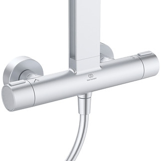 Ceratherm ALU+ термостатен стенен смесител за душ; стандартно присъединяване с S-холендри и цилиндрични розетки; термостатен механизъм на Ideal Standard; вентил с керамичен диск G1/2’’ 90°; Cool body технология; пластмасови ръкохватки с температурен ограничител на 40°C; възвратен клапан; Цветoви варианти: Черна коприна; Сребро; Розе.