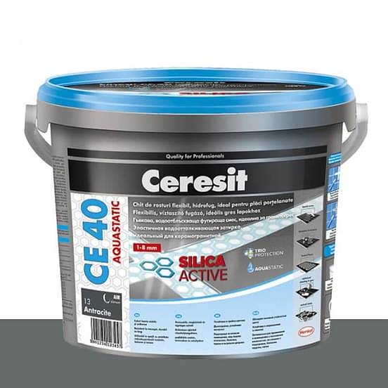 Фугиращата смес CERESIT CE40 притежава висока устойчивост на драскотини, пукнатини и плесен. Благодарение на аквастатичния ефект водните капки не проникват във фугиращата смес – затова е подходяща за мокри помещения като бани, душ-кабини, кухни.