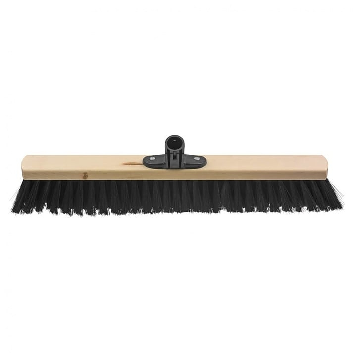 Индустриална широка четка за почистване с плътен пластмасов накрайник за закрепване на дръжката. Подходяща за професионална и домашна употреба.
