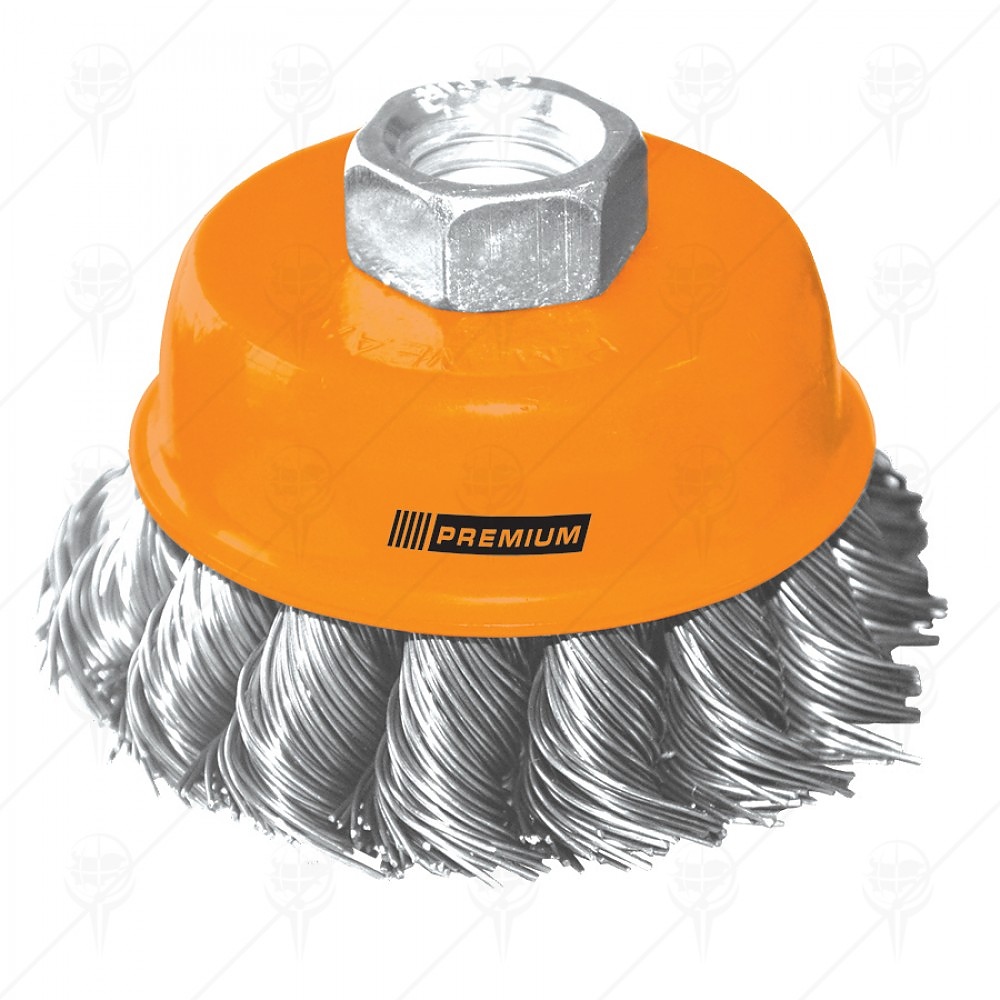 Телена четка за флекс камбана усукана PREMIUMTOOLS е изработена от месинг. Подходяща за заглаждане или отстраняване на грапавини, почистване на заваръчни шевове, отстраняване на боя или засъхнало лепило и други. Чашковидна телена четка за бормашина и мултишлайф, направени от вълнообразна стоманена тел със заострени краища.