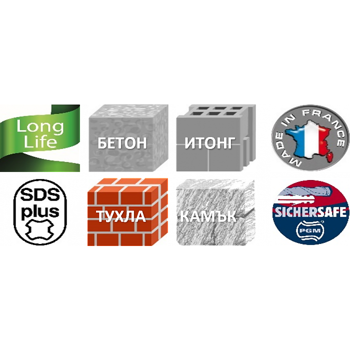 • Оптимизиран дизайн на свредло за по-бърза работа в бетон и тухла