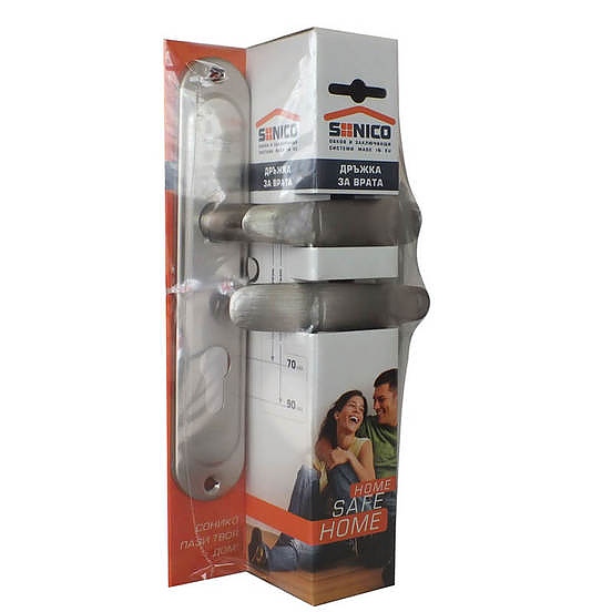 Секретна дръжка за врата SONICO от серия Силистра с междуцентрие 70мм и цвят сатен. Дръжката е предназначена за монтиране на врати със секретна брава. Вратите могат да бъдат интериорни и екстериорни - дървени, PVC и метални.