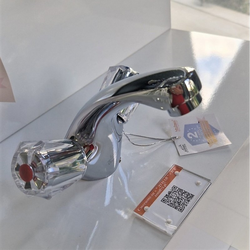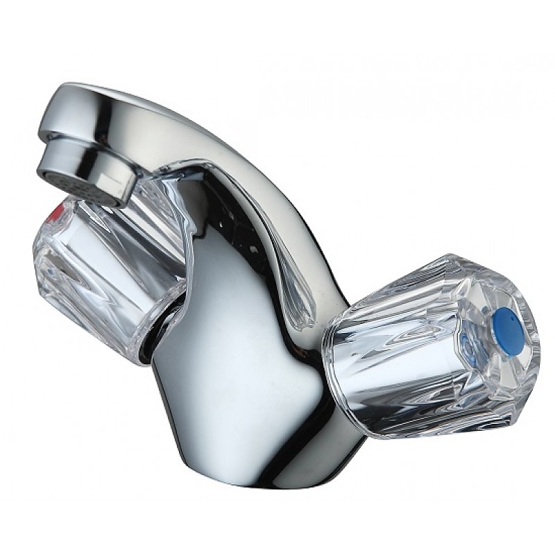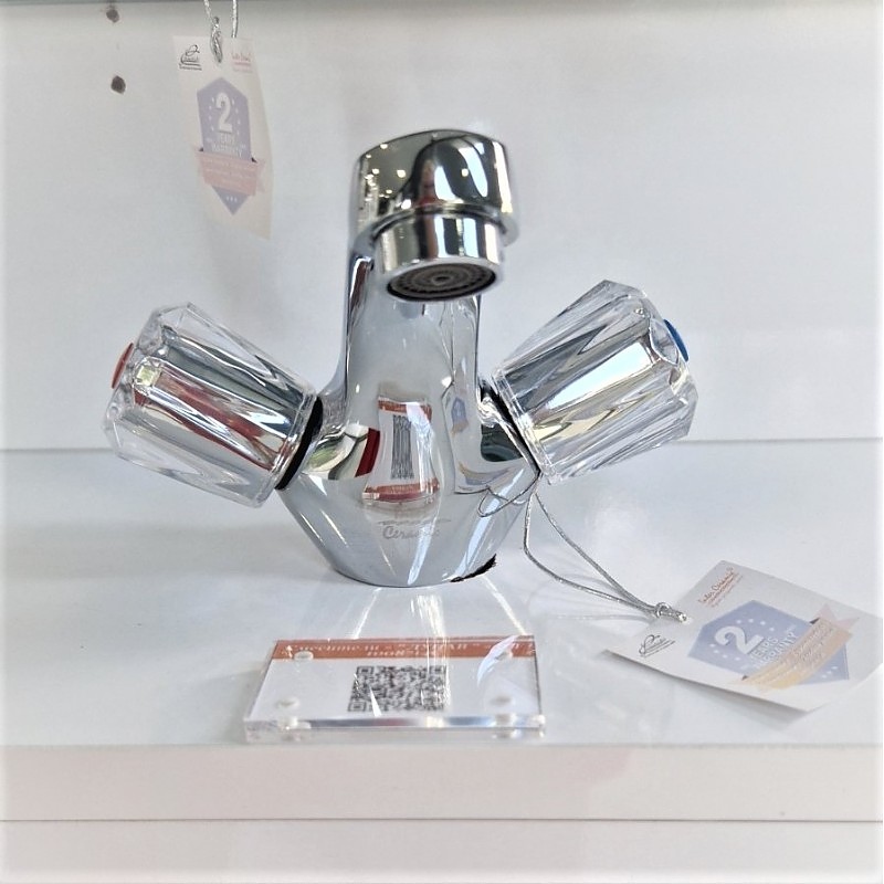 Месингов смесител с каучоков затварящ механизъм. Моделът е с ДВЕ ръкохватки - за умивалник . Предвиден за стоящ монтаж