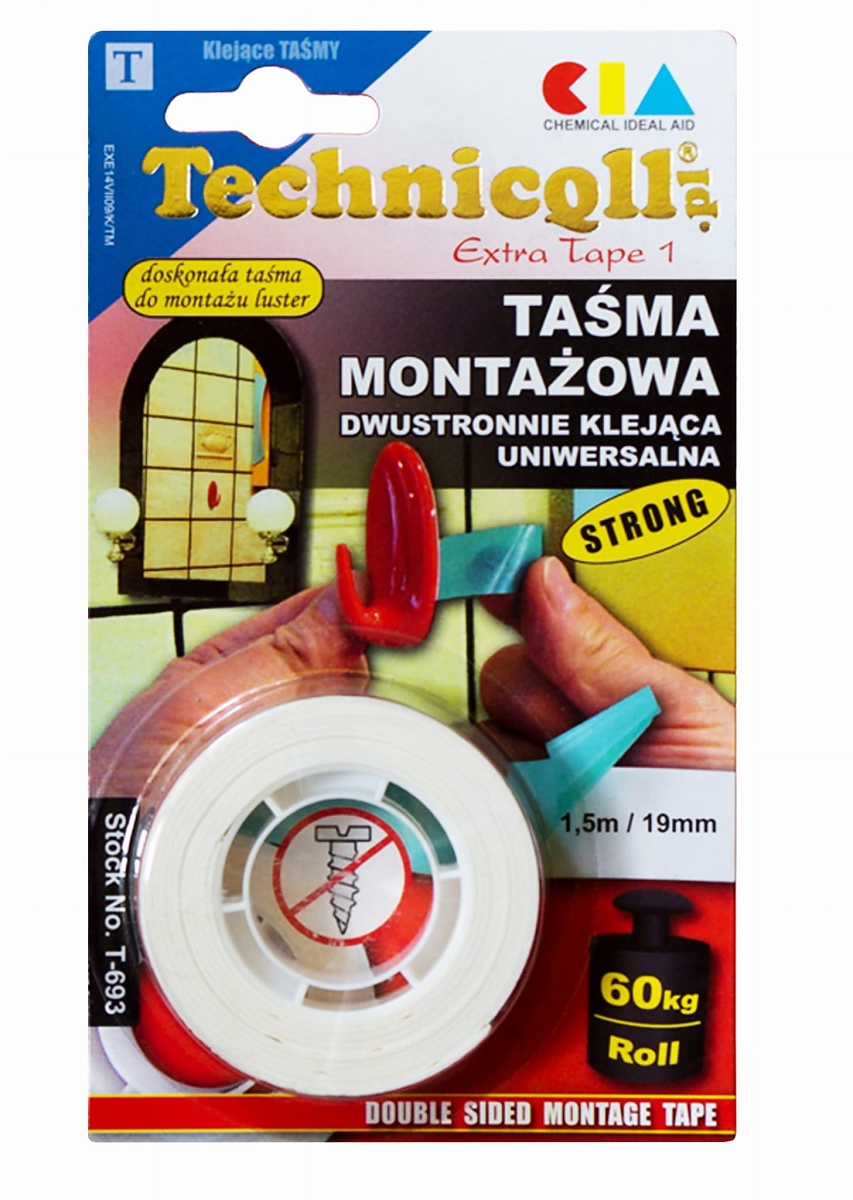 – изрежете лента с необходимата дължина и е залепете към едната от повърхностите (1см² лента може да издържи 10кг. тежест).