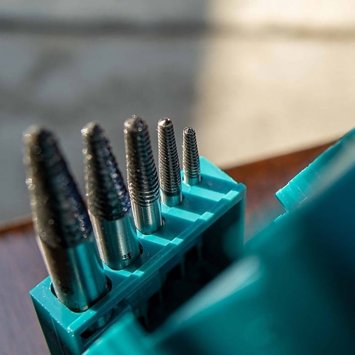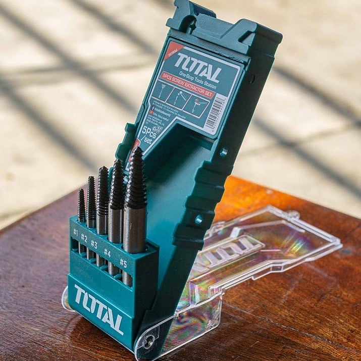 Професионален комплект за отстраняване на счупени болтове. Благодарение на широката гама от размери, той е чудесен инструмент във всеки сервиз или автосервиз. Използваният материал с твърдост 48 ~ 52HRC гарантира висок комфорт и ефективност.