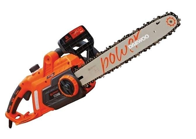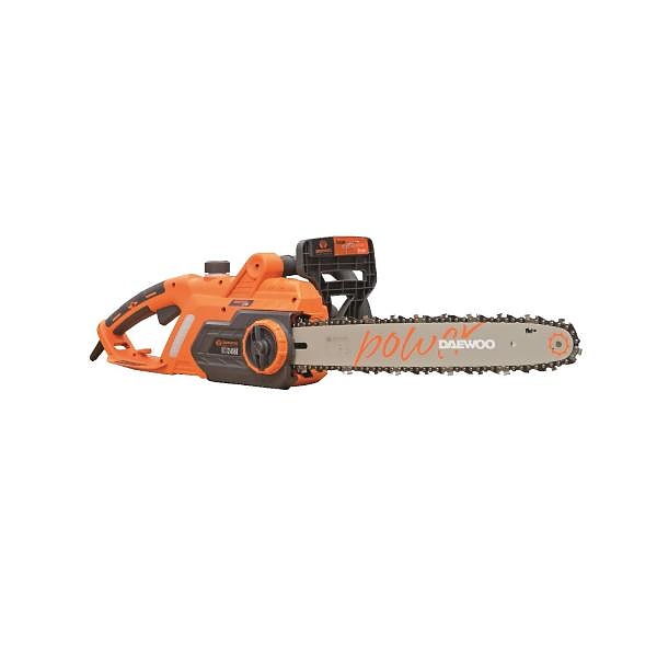Електрическа резачка за дърва DAEWOO DCS2416E разполага с мощен двигател 2400 W и шина с дължина 405 мм. Оборотите на празен ход са 7000 об./мин. Системата за автоматично смазване на веригата позволява настройка на степента на смазване в зависимост от типа на рязане. Машината има ергономичен дизайн на корпуса и ръкохватка за удобство и лекота на работа, гарантиращи отлични резултати. Антивибрационната система намалява нивата на умора.