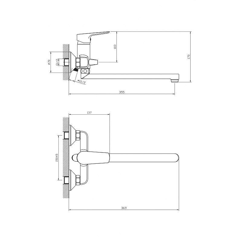 Месингов смесител с керамичен затварящ механизъм. Моделът е с ЕДНА ръкохватки - За баня с аксесоар за душ Предвиден за стенен монтаж