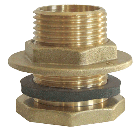 Накрайник за резервоар в комплект с гумени уплътнения и затягаща гайка. Използва се за монтаж в отвор на равна повърхност на стени на контейнер, за свързване към главна линия, за пълнене или източване на течности.