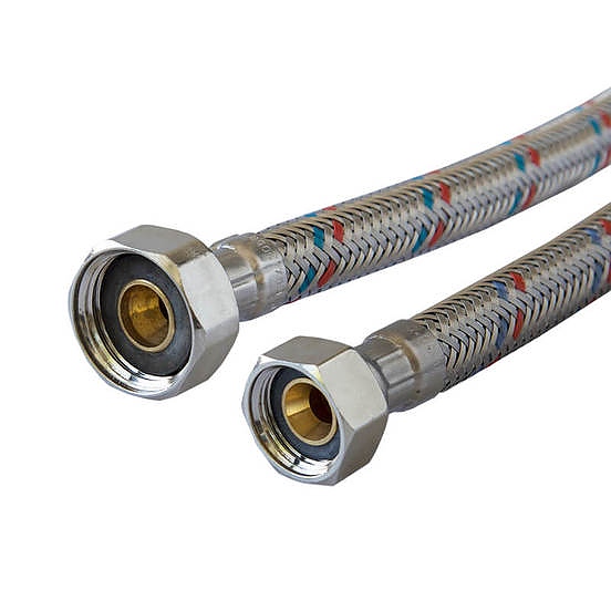 Всяка гъвкава връзка е изработена от никелирани месингови накрайници, висококачествен каучуков маркуч, подходящ за питейна вода и оплетка от неръждаема стомана и уплътнения.