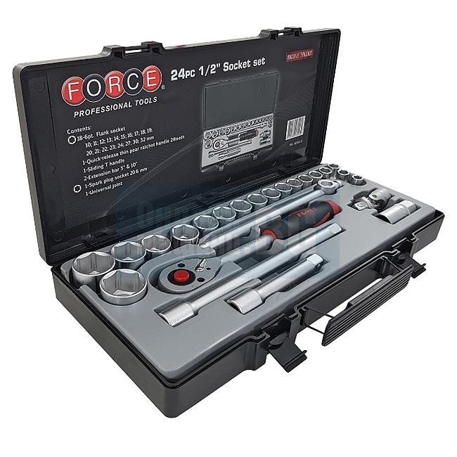 Гедоре комплект FORCE 4246-5 е със захват 1/2", размер на вложките 10-32 мм и вложка за автомобилна свещ 20,6 мм. Има реверсивна тресчотка, 2 броя удължители и Т-образен върток. Комплектът от 24 части е в удобен за пренасяне и съхранение куфар.
