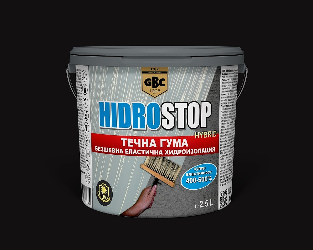 GBC Hidrostop е еластична хидроизолация за външно и вътрешно приложение- течна гума
