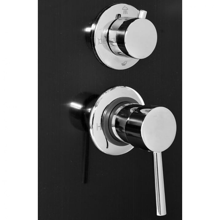 Душ панел, оборудван с дъждовен душ и хидромасажна функция. Осигурява ви свобода и комфорт по време на къпане. Елегантният стоманен профил перфектно подчертава декора на всяка баня.
