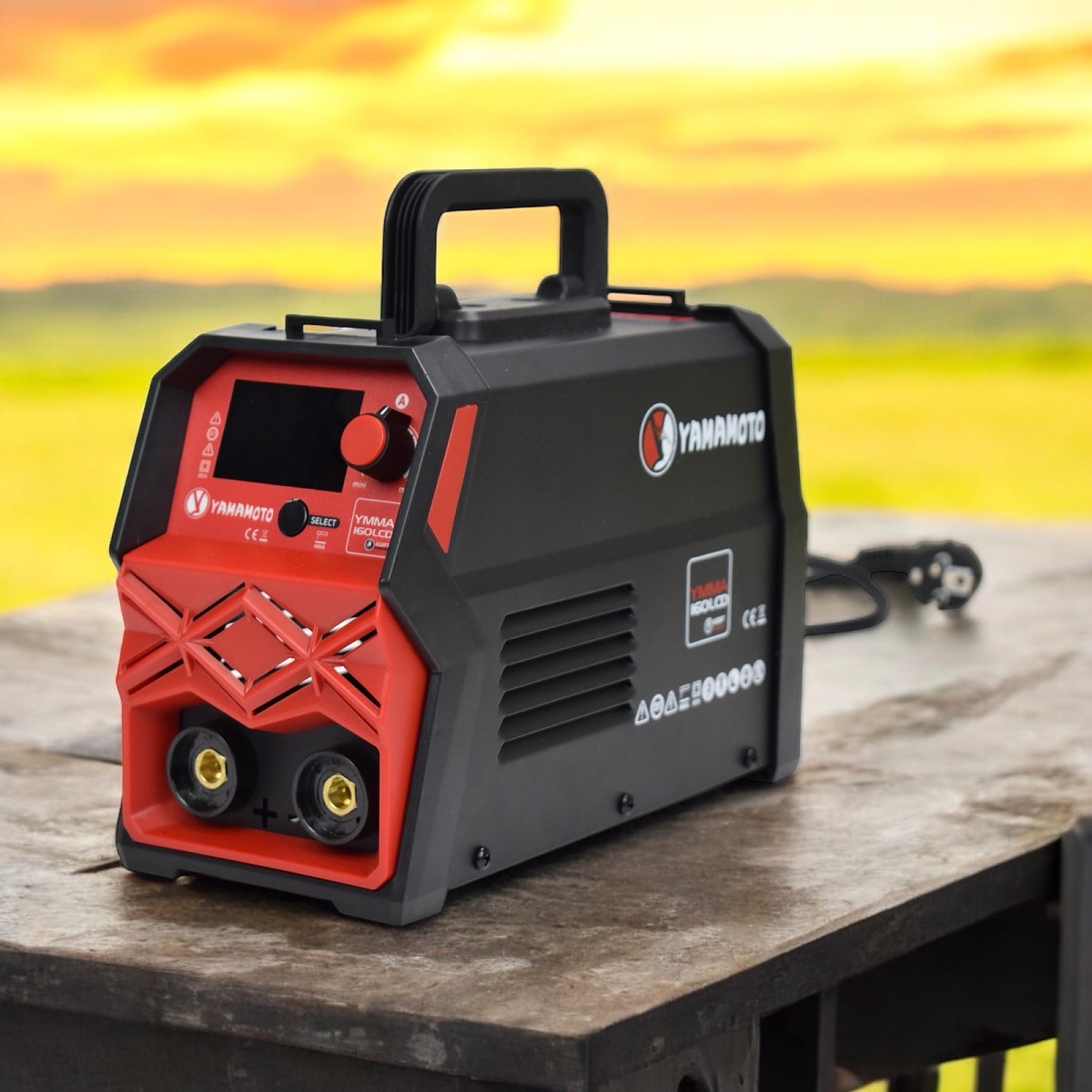 Практичен модел инверторен електрожен, модел YMMA-160LCD на YAMAMOTO, подходящ за висококачествено и прецизно заваряване с електроди от 1.6 до 4 мм. Благодарение на възможността за регулиране на заваръчния ток от 20 до 160A, този инверторен електрожен намира приложение за повечето видове заваръчни задачи, същевременно предоставяйки надеждност и качество. Специално разработен за употреба в условия на проблемно електрозахранване или ниско напрежение, модела осигурява стабилност и точност при заваряване. Подходящ предимно за хоби майстори, лесен за пренасяне, благодарение на своята компактна конструкция и леко тегло. Снабден с LCD дисплей за ясно отчитане на заваръчния ток.
