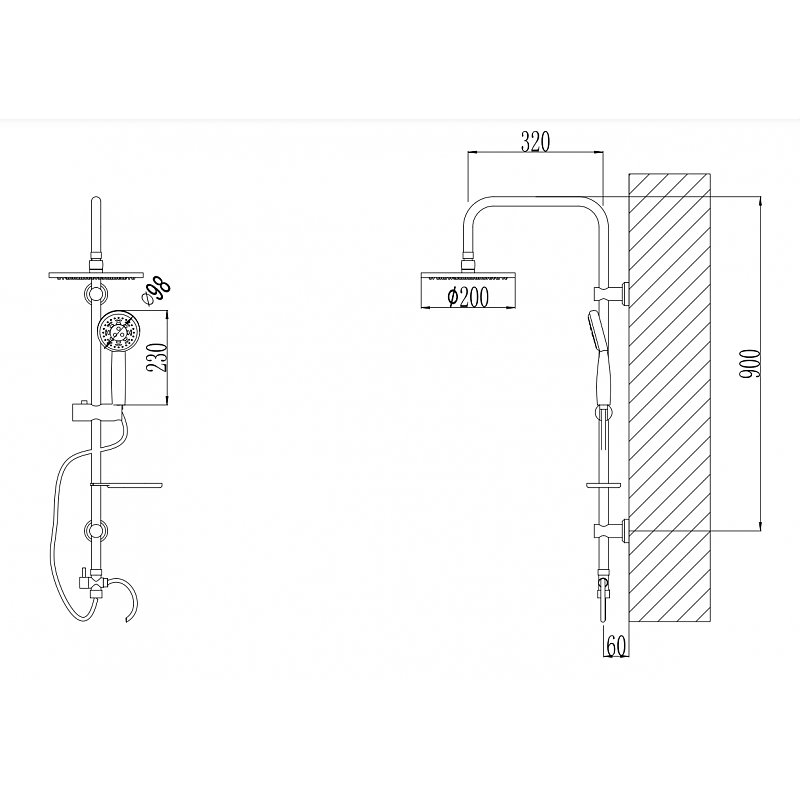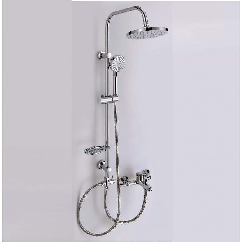 Душ система - Телескопично тръбно окачване за баня 2 в 1 ICT 6641, серия КАПРИ. Разполага със смесител за вана/душ с чучур, тръба/колона със стационарен душ-пита, подвижен ръчен душ и шлаух.