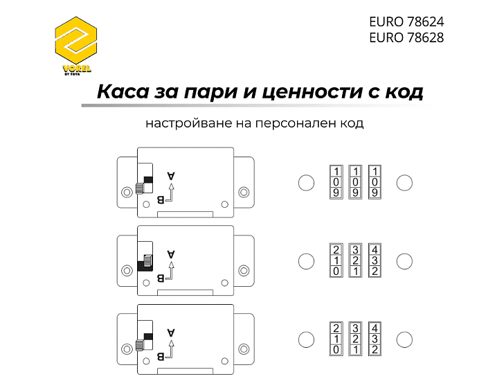 • Ключалка: механична с код (комбинация от 3 цифри)