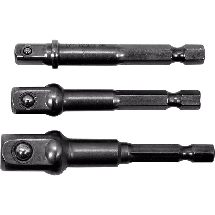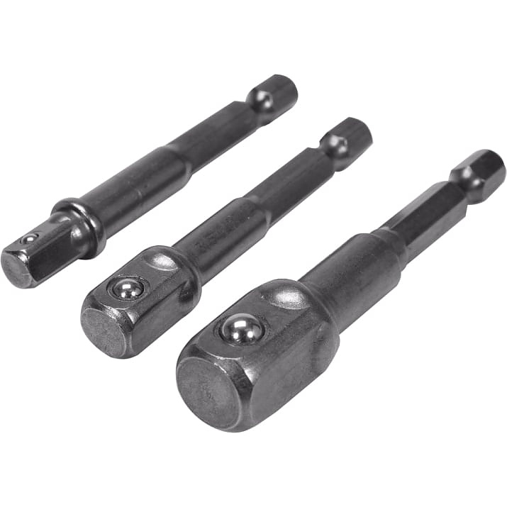 Комплект надеждни адаптори за вложки, изработени от качествена хром - ванадиева стомана и оксидирано покритие. Подходящи са за ежедневна употреба в автосервизи, работилници и други.