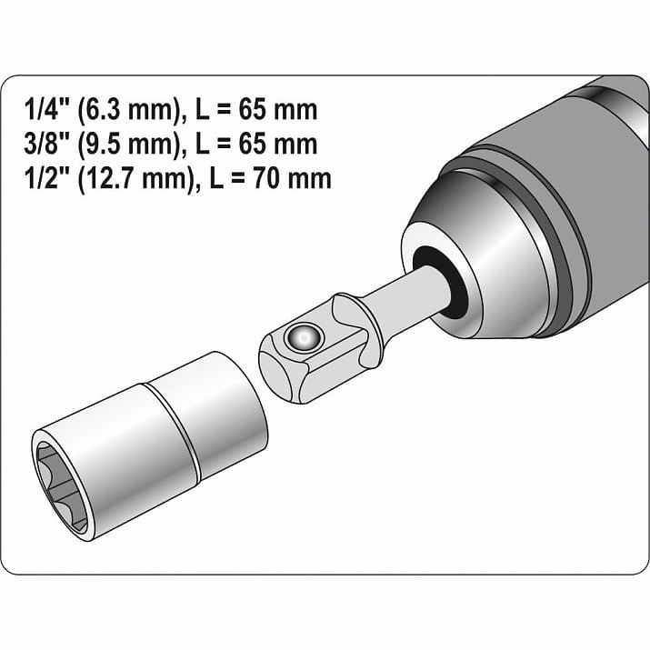• Подходящи за вложки: 1/4", 3/8", 1/2"