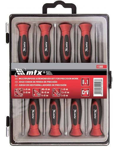 Комплект отвертки за фина механика, универсален, 8бр Продуктие на марка MTX се отличават със своята здравина и функционалност. Нови идеи при полу-професионалните ръчни и механизирани инструменти. Продуктите са подходящи за редица приложения. Те съчетават добър дизайн и качествена изработка с изключително съотношение цена-качество. В продуктите се влагат качествени материали, представляващи новите тенденции в техническия прогрес. Може да закупите произволен брой от тях с пълна увереност, че ще издържат. MTX произвежда богата гама от инструменти, които могат да се използват в домашни условия или професионално. Тези добри инструменти ще ви помогнат да направите проектите си много по-интересни и по-ефективни, а вашето хоби ще бъде истинско удоволствие.