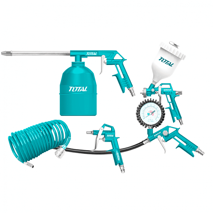 Комплект от най-популярните пневматични инструменти и маркуч за сгъстен въздух, 5 части