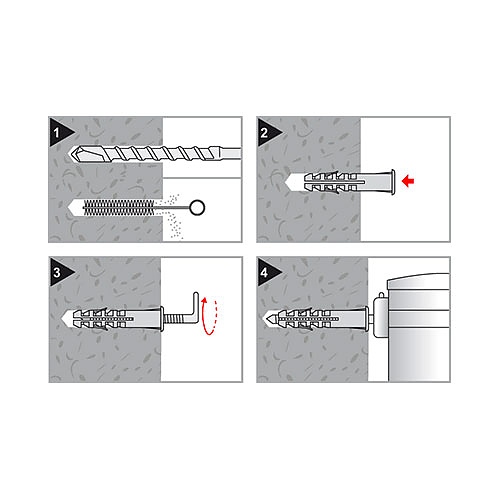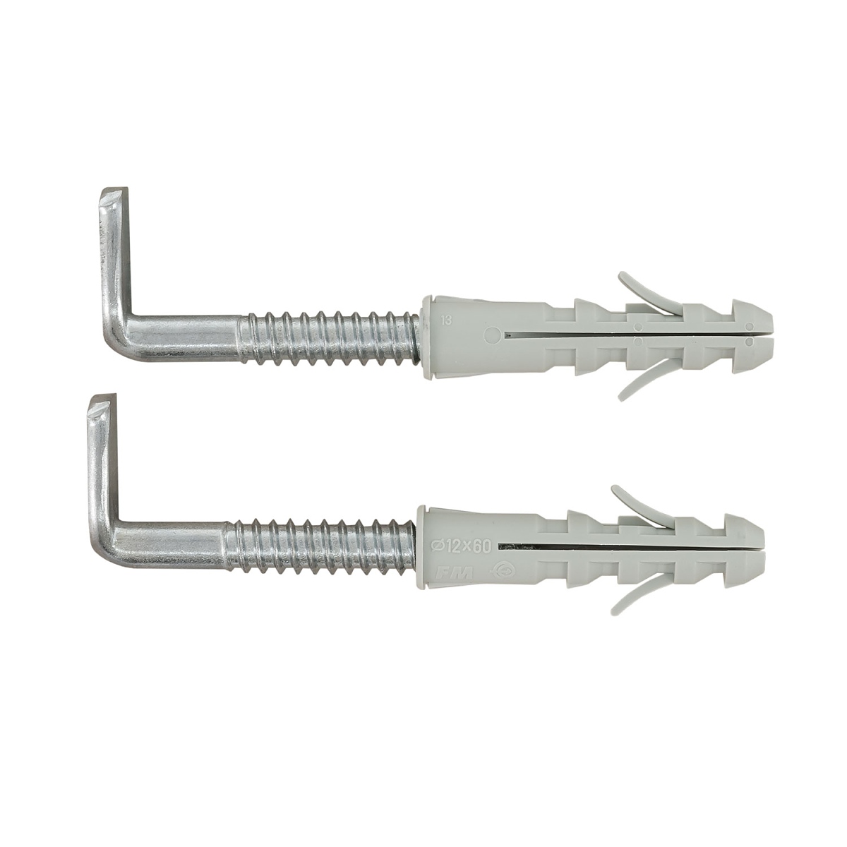 Комплекта се състой от две поцинковани Г-образни куки и два дюбела.
