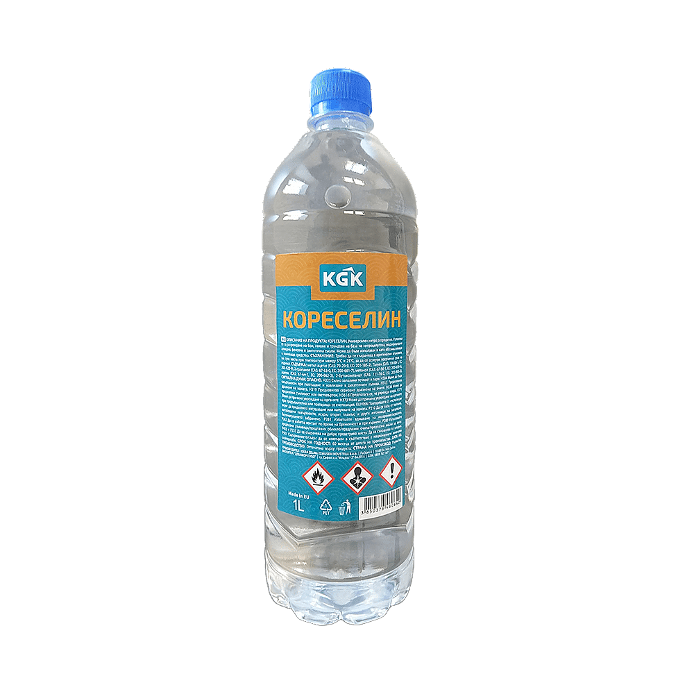 Кореселин KGK е предназначен за разреждане на бои, лакове и грундове на база на нитроцелулоза, модифицирани алкидни, фенолни и синтетични смоли. Може да бъде използван и като обезмасляващо и измиващо средство. В пластмасова бутилка с капачка, защитена от отваряне от деца.