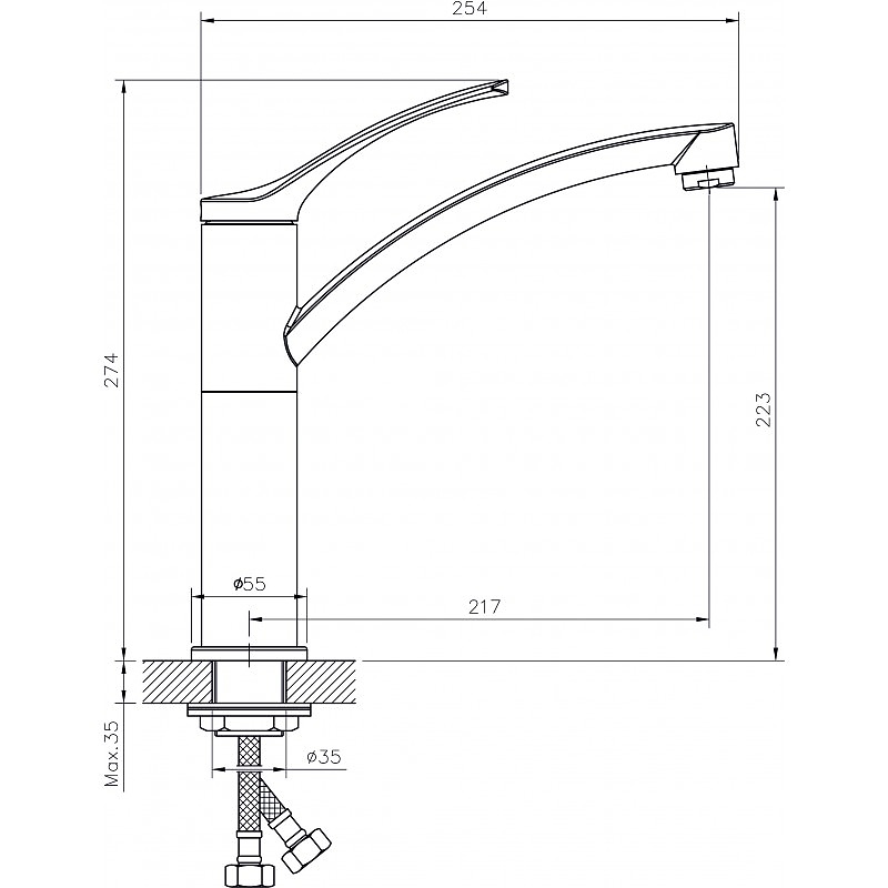Кухненски смесител Inter Ceramic с единична ръкохватка, подходящ за кухненски умивалник.