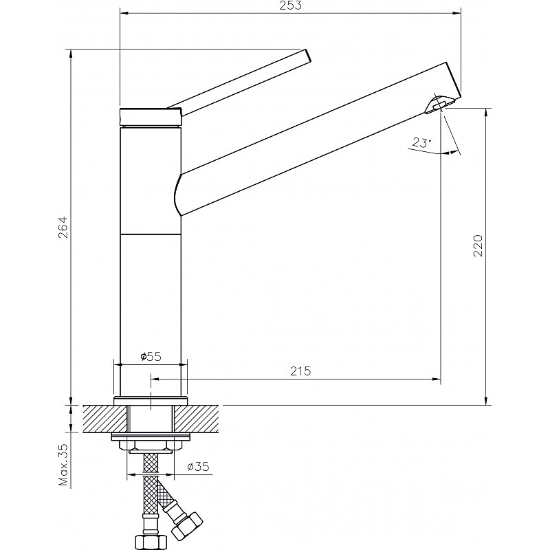 Смесител за кухненска мивка/умивалник ICF 7187186 с една ръкохватка, серия LUX KITCHEN LINE. Изработен от месинг.