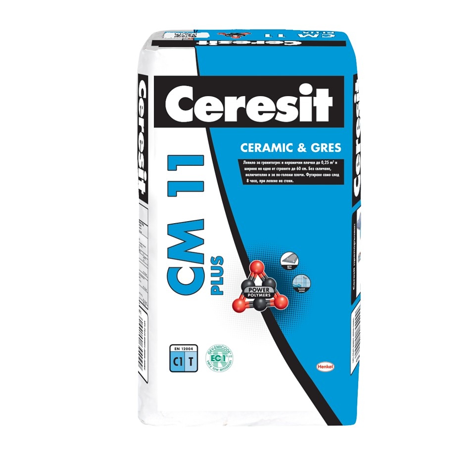CM 11 PLUS GRES е лепило за полагане на гранитогрес, керамични плочки и естествен камък (с изкл. на мрамор.) CM 11 PLUS GRES е подходящо за лепене на плочки с нормална попиваща способност върху недеформируеми хидроизолирани основи. Лепилото не позволява свличане и е подходящо за лепене на плочки върху вертикални и хоризонтални основи.