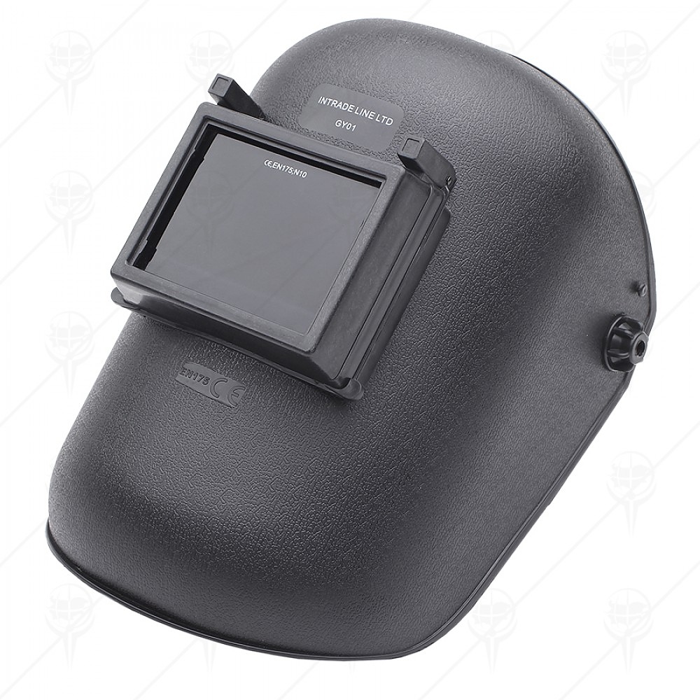 Маска електрожен шлем Характеристика: Шлем с регулираща околожка за заварчици, надчелник и повдигащ визьор Размер на стъклото: 50 х 100 мм Сертификат: Да