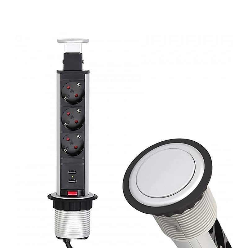 LIFT BOX USB е модерен и универсален мебелен удължител, който може да се монтира в бюра или кухненски плот. Има 3x 230V и 2x USB контакта с вградено зарядно. Просто включете телефона или таблета си, за да презаредите бързо батерията!