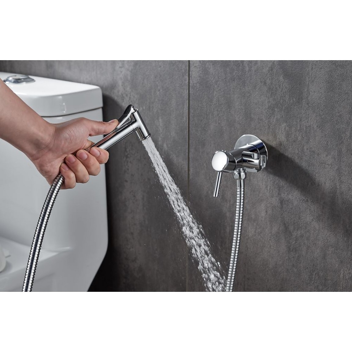 Смесител за вграждане с хигиенен душ ICF 3314 с хромирано покритие.
