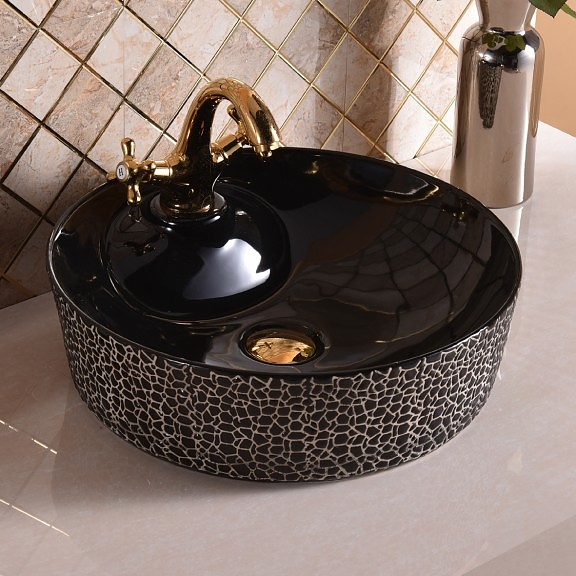 Мивка за плот ICB 870B разкрива изтънчен и внушителен дизайн, представен в класически черен цвят. Моделът е изработен от висококачествен порцелан и е с практични размери, правейки го практично решение за всяка една баня. Външната част на мивката е обагрена с по-светли орнаменти, които й придават уникална визия. Внесете внушителен и стилен акцент към цялостния интериор на мокрото помещение с мивка за плот ICB 870B.
