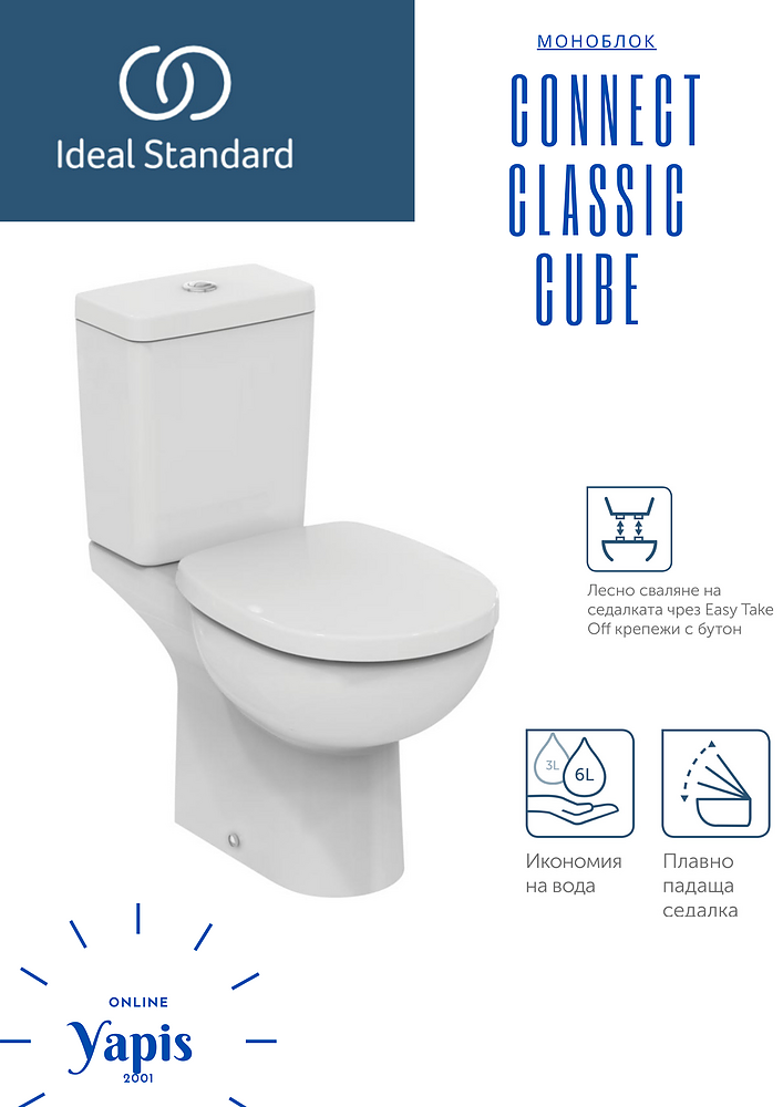 - Казанче Connect Cube с двоен бутон 6/3 L, долно водоподаване