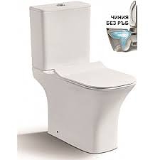 Порцеланов WC комплект с RIMLESS обливане, което представлява тоалетна чиния без ръб. За разлика от стандартните модели, тези имат малка промяна в конструкцията, в която няма ръб, но въпреки това водата облива чинията без да излиза от нея. Това води до предимства за по лесно почистване - Няма нужда от огромни количества препарат, нито специална, по-малка четка за ръба. Цялата тоалетна се почиства лесно, бързо и с едно движение като срещу това получавате по-добра хигиена .