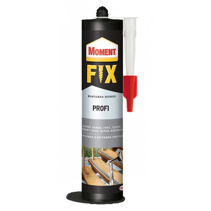 Продукт с висока сила на сцепление и с отлични характеристики за работа на закрито и открито. Специалната му формула гарантира водоустойчиво залепване. Продуктът е предназначен за залепване на най-често срещаните строителни материали: бетон, дърво, метал, твърдо PVC, керамични плочки, зидария и стиропор. За монтиране на первази, дървени и ПДЧ плоскости, гипскартонени и коркови плоскости, облицовъчни ленти, обшивки (от дърво и метал) и др.