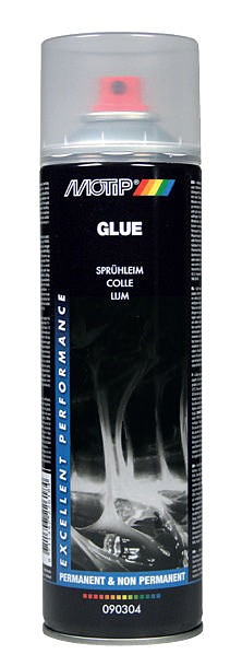 MOTIP Лепило спрей, 500ml - висококачествено бързосъхнещо лепило за постоянно и временно залепване; подходящо за лепене на хартия, картон, дърво, корк, текстил, кожа, различни видове пластмаса; повърхността трябва да е суха, чиста и обезмаслена; аерозолът трябва да е със стайна температура; температура на работа между 5 - 30 градуса; лепилото се нанася от 25-30 см.; за постоянно залепване се напръскват двете повърхности, изчаква се се 15-20 мин и се притискат силно; за временно залепване, лепило се нанася само върху едната повърхност, като след 5-10 мин. двете повърхности се притискат силно. При залепване на порести повърхности трябва да се нанесат 2-3 слоя.