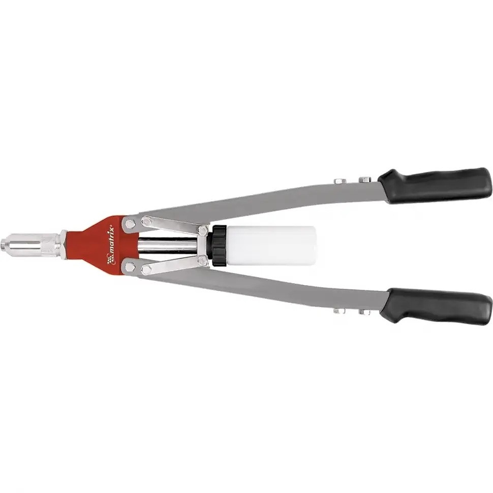 Нитачката е с две дръжки, подсилена. Необходим инструмент при работа с ламарина, различни тънкостенни конструкции, метални профили и др. Работи с нитове с диаметър 3,2, 4,0-4,8-6,0-6,4 мм . Този модел има вграден контейнер за използваните глави на нитове.