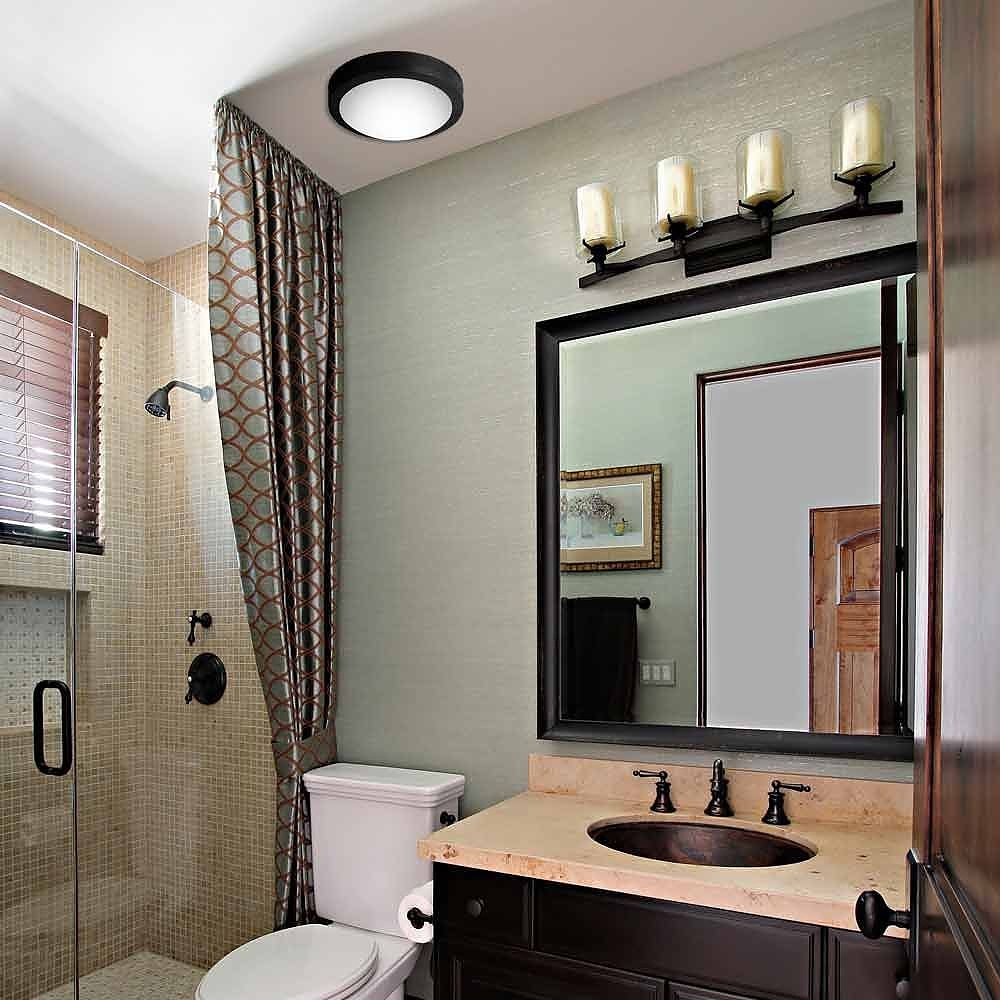 MEZZO LED са серия влагозащитени кръгли LED плафониери с IP65 и черен цвят на декоративния кант. Едната е с изчистен дизайн, а другата е с декоративна предна решетка. И двете плафониери от серията светят с цветна температура 4000К (неутрална светлина).