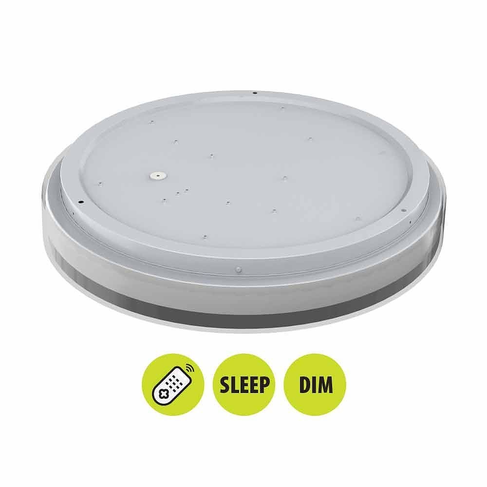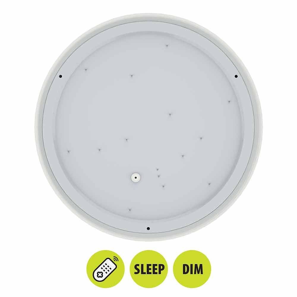 LED плафониерата PLEADA LED RGB има възможност за димиране и смяна на цветната температура и цвета на светлината с помощта на дистанционно управление. Чрез него може да се направи избор на режим, в който плафониерата да работи.