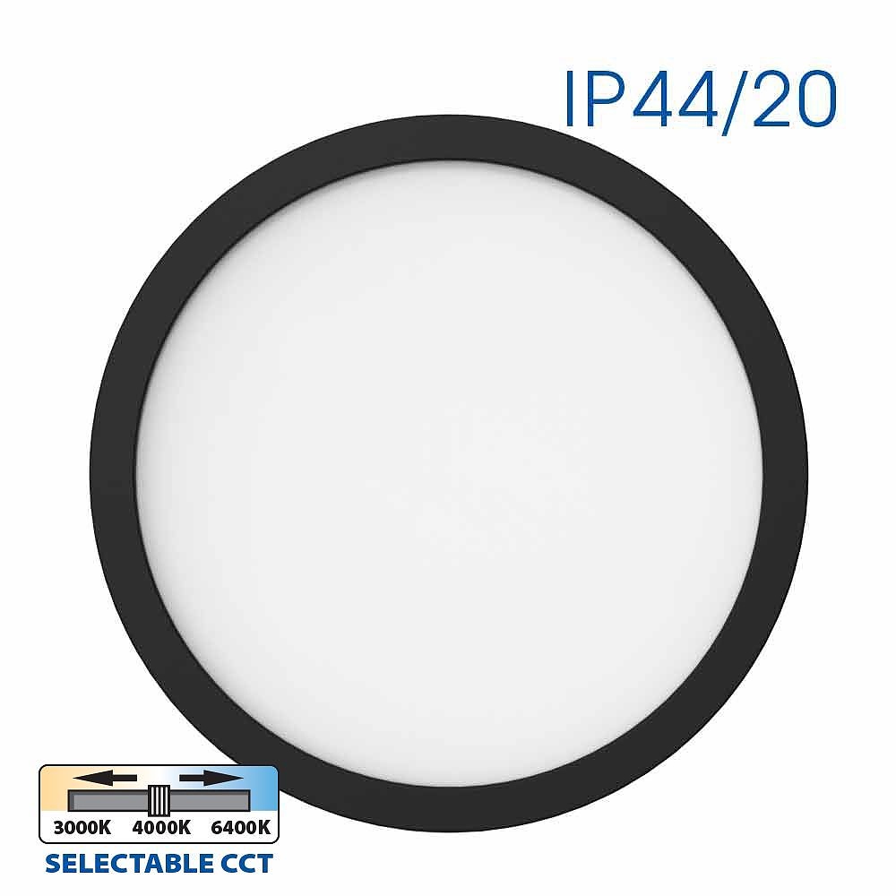 Телата от серията NEBULA LED са с индекс на влагозащита и прахозащита IP44 и са подходящи за осветление в банята или в други помещения с повишени нива на влага: - Могат да се монтират както като плафониери за външен монтаж с монтажна скоба, така и да се поставят на окачен таван чрез кпипсове, включени в комплекта - разстоянието между клипсовете се регулира, за да се ползва монтажен отвор с диаметър от 65 до 240 мм. - Чрез плъзгач се избира желаната цветна температура - 3000К (топло-бяла светлина), 4000К (неутрална светлина) или 6400К (дневна светлина). - Чрез плъзгач се избира желаната мощност и сила на светене: 12W, 18W или 24W; - Предлагат се с метален външен ринг в цвят хром и черен.