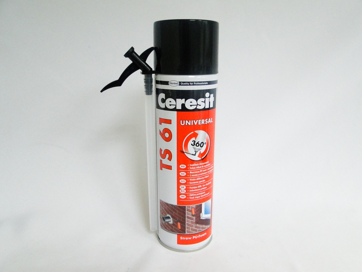 CERESIT TS 61 е еднокомпонентна, втвърдяваща се под въздействието на влажността полутвърда полиуретанова пяна, с отлична клетъчна структура и добра механична якост. Тя се използва и нанася лесно с доставената сламка. Пяната се разширява сама и докато се втвърди, се разширява близо два пъти – затова трябва да се съобрази известно свободно пространство за разширяване. Отлично залепва за дърво, бетон, камък, метал и др. Количеството втвърдена пяна зависи до голяма степен от условията на работа – температура, влажност на въздуха, пространство за разширяване и др. Продуктът не съдържа хлорирани и флуорирани въглеводороди (CFC) под налягане.