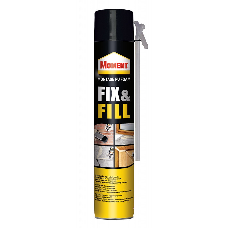 Moment FIX&FILL е лесна за употреба еднокомпонентна, втвърдяваща се под въздействието на влажността полиуретанова пяна. Пяната е саморазширяваща се. Работният й обем се увеличава почти два пъти в процеса на нанасяне. Moment FIX&FILL има отлично сцепление към дърво, бетон, камък, метал и т.н. Основите могат да бъдат влажни, но не и заскрежени или заледени.